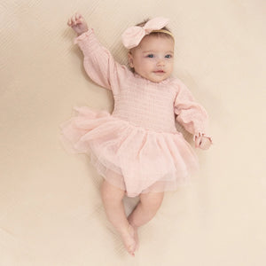 ANGEL DEAR- Solid Muslin Lotus Long Sleeve Smocked Bubble with Tutu