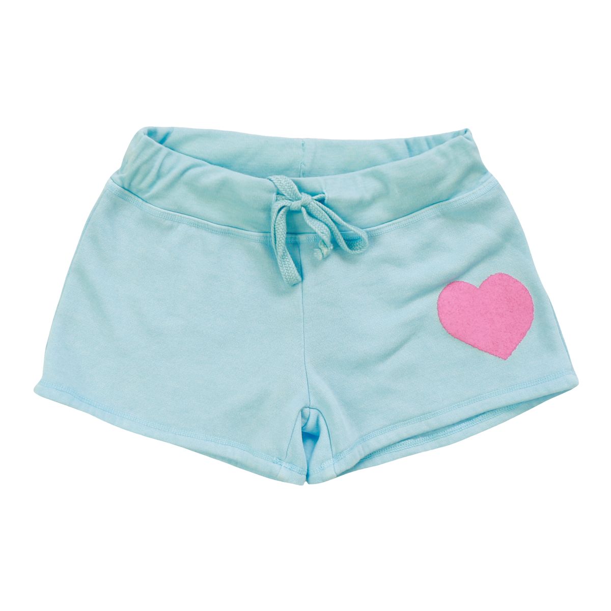 These soft aqua shorts with a pink heart patch and comfy drawstring waist give girls a sweet, easygoing look perfect for playtime and everyday wear.