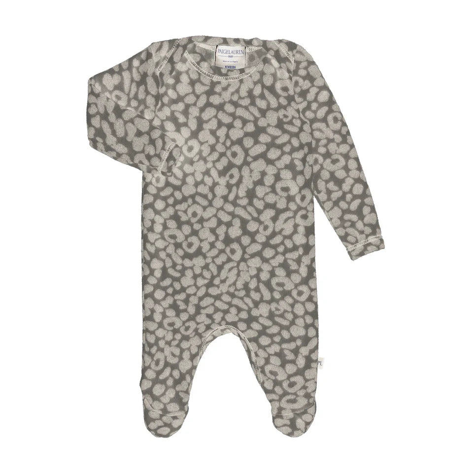 This ultra-soft gray leopard-print footie keeps babies cozy and cute from nap time to playtime.