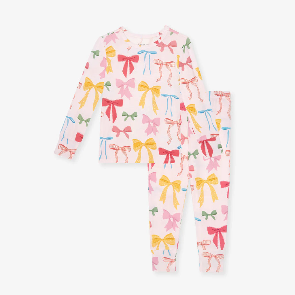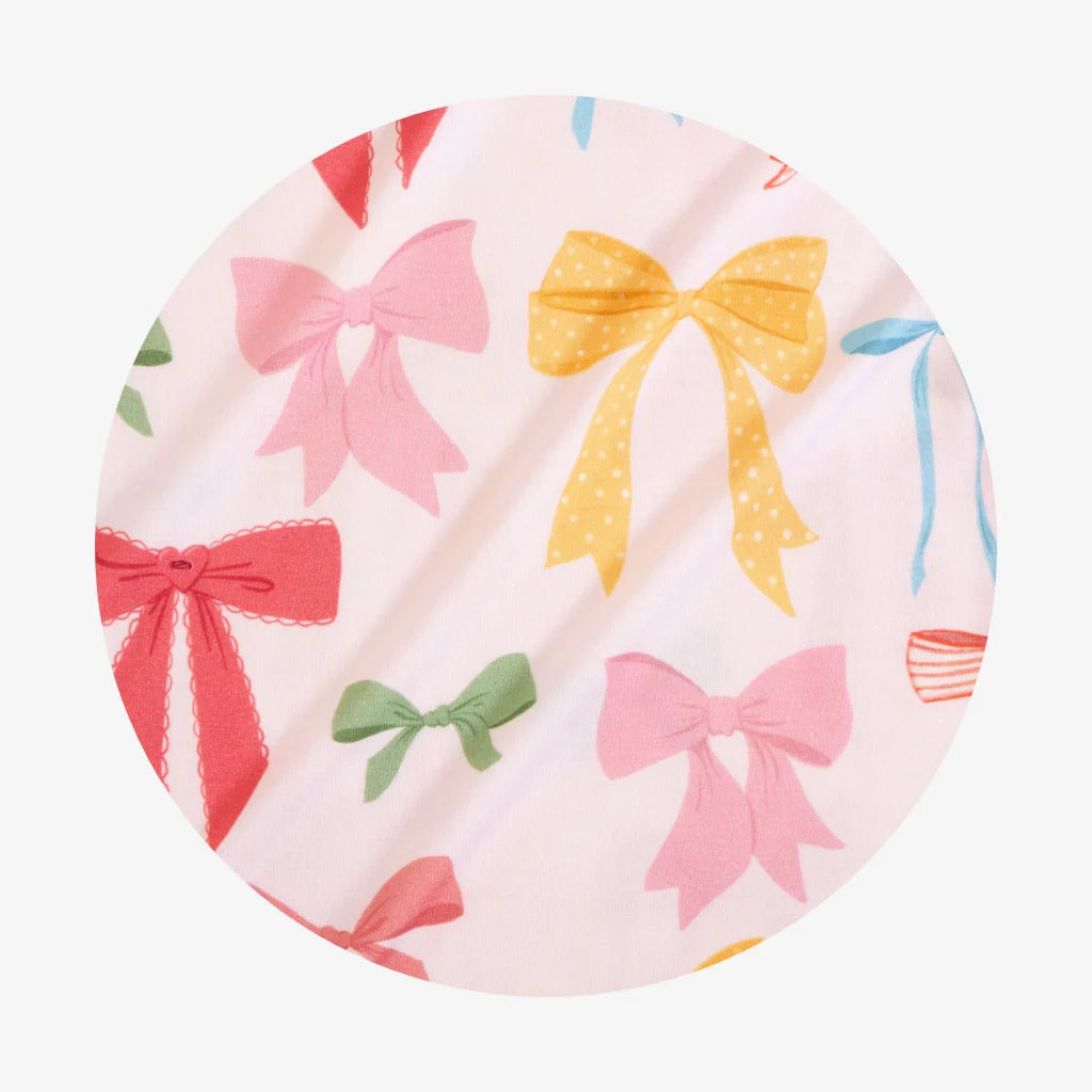 This cozy bow-print pajama set is made from ultra-soft, stretchy fabric with a snug yet comfortable fit, making it a bedtime favorite moms love for sweet dreams and all-night comfort.