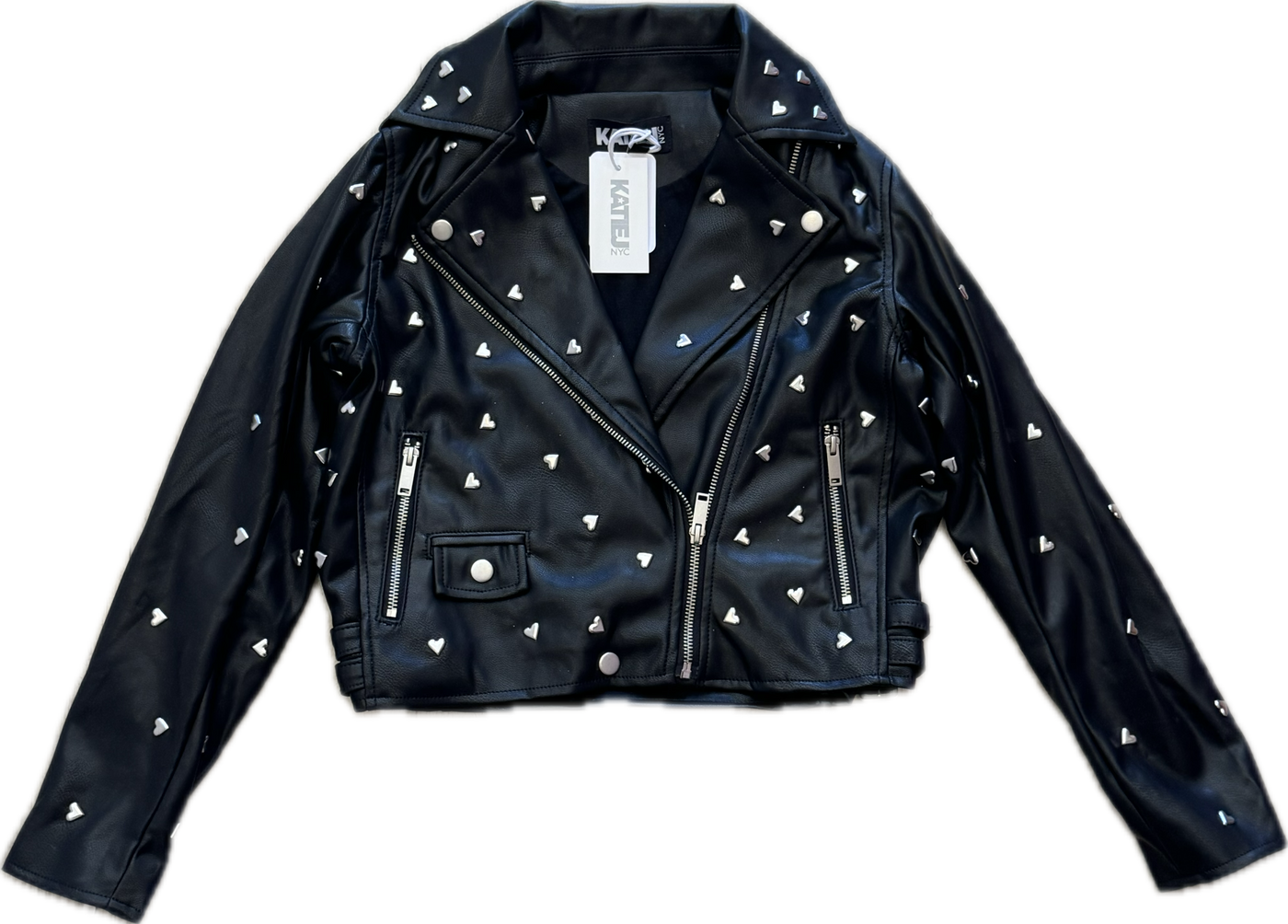 {"id":8273797480618,"title":"KATIEJ NYC- NICKS JACKET","handle":"katiej-nyc-nicks-jacket","description":"\u003cp\u003e\u003cmeta charset=\"utf-8\"\u003eThis black faux leather moto jacket is studded with silver heart accents, giving a classic edgy style a fun and playful twist.\u003c\/p\u003e","published_at":"2025-10-16T13:07:48-07:00","created_at":"2025-10-16T12:49:48-07:00","vendor":"Katie J NYC","type":"Jacket","tags":["faux leather","girl","girl jacket","girl top","girl tops","girls","girls top","jacket","Katie J","Katie J NYC","katiejnyc","leather jacket","top","tops","vegan leather"],"price":18700,"price_min":18700,"price_max":18700,"available":true,"price_varies":false,"compare_at_price":null,"compare_at_price_min":0,"compare_at_price_max":0,"compare_at_price_varies":false,"variants":[{"id":47542717579434,"title":"7-8","option1":"7-8","option2":null,"option3":null,"sku":null,"requires_shipping":true,"taxable":true,"featured_image":null,"available":true,"name":"KATIEJ NYC- NICKS JACKET - 7-8","public_title":"7-8","options":["7-8"],"price":18700,"weight":0,"compare_at_price":null,"inventory_management":"shopify","barcode":"","requires_selling_plan":false,"selling_plan_allocations":[]},{"id":47542717612202,"title":"10","option1":"10","option2":null,"option3":null,"sku":null,"requires_shipping":true,"taxable":true,"featured_image":null,"available":true,"name":"KATIEJ NYC- NICKS JACKET - 10","public_title":"10","options":["10"],"price":18700,"weight":0,"compare_at_price":null,"inventory_management":"shopify","barcode":"","requires_selling_plan":false,"selling_plan_allocations":[]},{"id":47542717644970,"title":"12","option1":"12","option2":null,"option3":null,"sku":null,"requires_shipping":true,"taxable":true,"featured_image":null,"available":true,"name":"KATIEJ NYC- NICKS JACKET - 12","public_title":"12","options":["12"],"price":18700,"weight":0,"compare_at_price":null,"inventory_management":"shopify","barcode":"","requires_selling_plan":false,"selling_plan_allocations":[]},{"id":47542717677738,"title":"14","option1":"14","option2":null,"option3":null,"sku":null,"requires_shipping":true,"taxable":true,"featured_image":null,"available":true,"name":"KATIEJ NYC- NICKS JACKET - 14","public_title":"14","options":["14"],"price":18700,"weight":0,"compare_at_price":null,"inventory_management":"shopify","barcode":"","requires_selling_plan":false,"selling_plan_allocations":[]}],"images":["\/\/raggtattoo.com\/cdn\/shop\/files\/Subject32_a9bb51c9-8c99-44fd-a871-4ee9a47a782a.png?v=1760645224"],"featured_image":"\/\/raggtattoo.com\/cdn\/shop\/files\/Subject32_a9bb51c9-8c99-44fd-a871-4ee9a47a782a.png?v=1760645224","options":["Size"],"media":[{"alt":null,"id":33665657110698,"position":1,"preview_image":{"aspect_ratio":1.395,"height":2041,"width":2847,"src":"\/\/raggtattoo.com\/cdn\/shop\/files\/Subject32_a9bb51c9-8c99-44fd-a871-4ee9a47a782a.png?v=1760645224"},"aspect_ratio":1.395,"height":2041,"media_type":"image","src":"\/\/raggtattoo.com\/cdn\/shop\/files\/Subject32_a9bb51c9-8c99-44fd-a871-4ee9a47a782a.png?v=1760645224","width":2847}],"requires_selling_plan":false,"selling_plan_groups":[],"content":"\u003cp\u003e\u003cmeta charset=\"utf-8\"\u003eThis black faux leather moto jacket is studded with silver heart accents, giving a classic edgy style a fun and playful twist.\u003c\/p\u003e"}