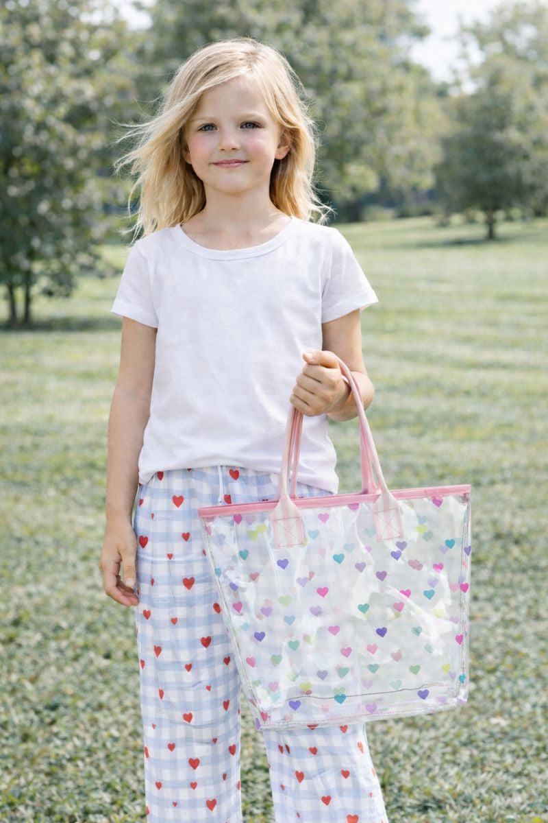 This adorable clear heart-confetti tote bag is perfect for little girls, offering a lightweight, easy-to-clean way for moms to carry toys, snacks, or Valentine’s goodies in sweet, colorful style. 💕
