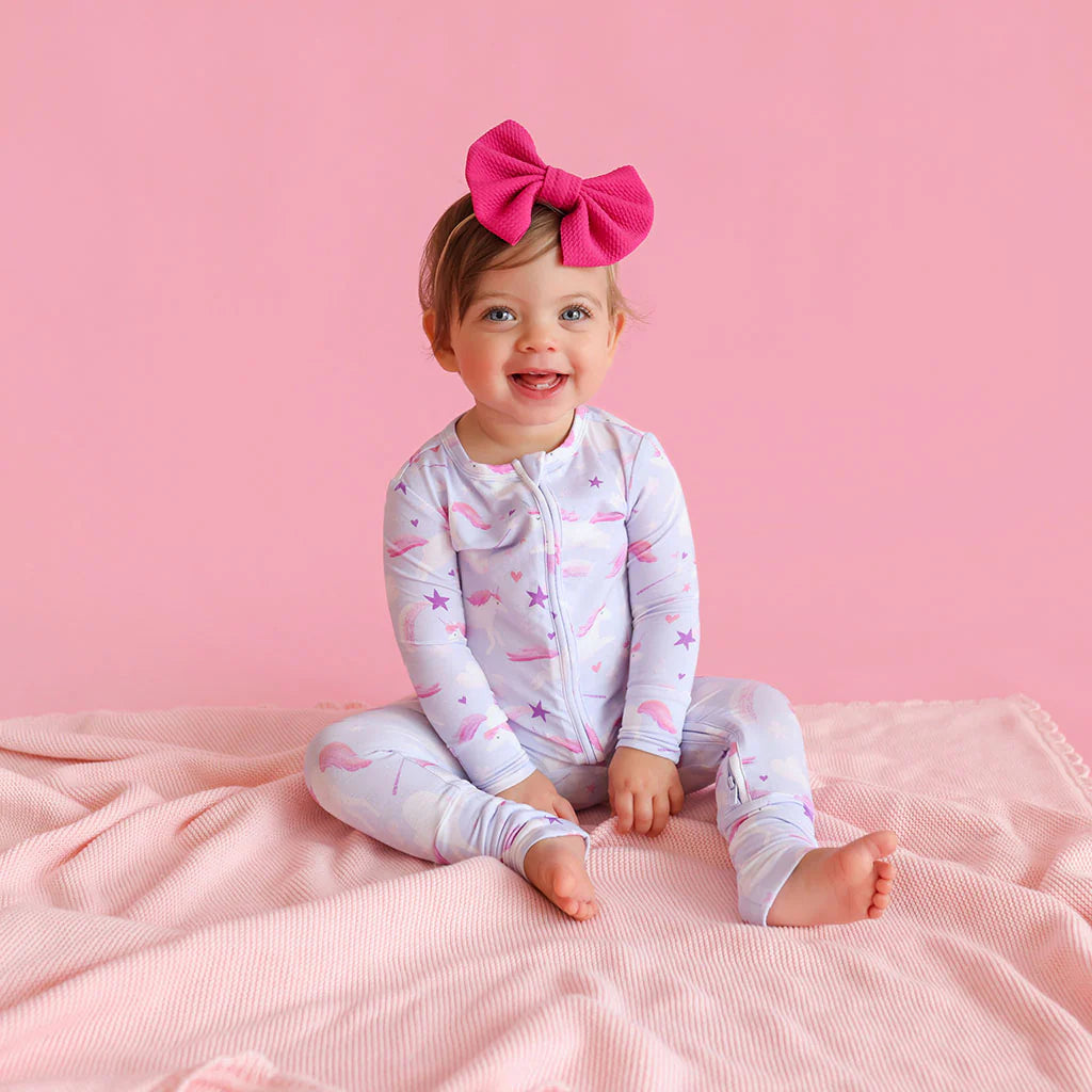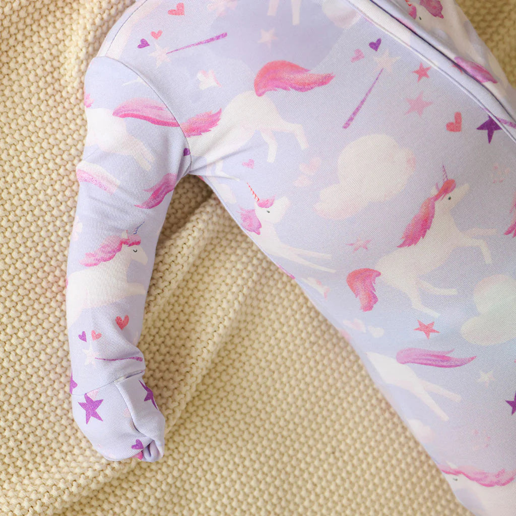 This dreamy unicorn-print zippered sleeper is crafted from ultra-soft, breathable fabric with a smooth two-way zipper, giving moms a magical, cozy, and easy-change essential for sweet dreams day or night.