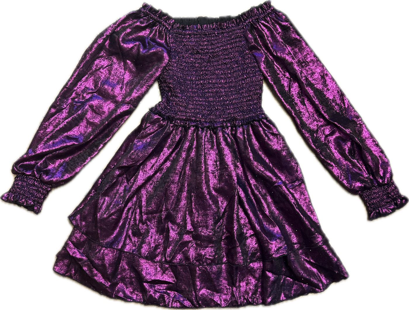 {"id":8270215413930,"title":"Flowers By Zoe- Purple Metalic Off-Shoulder Dress","handle":"flowers-by-zoe-1","description":"\u003cp\u003e\u003cmeta charset=\"utf-8\"\u003e\u003cstrong data-start=\"49\" data-end=\"85\"\u003ePurple Metalic Off-Shoulder Dress\u003c\/strong\u003e – A shimmering purple metalic dress with smocked bodice and puffed long sleeves, perfect for a standout holiday or party look.\u003c\/p\u003e","published_at":"2025-10-11T14:49:34-07:00","created_at":"2025-10-11T14:49:31-07:00","vendor":"Flowers by Zoe","type":"Dress","tags":["dress","dresses","flowers by zoe","girl","girl dress","girls","long sleeve dress"],"price":11000,"price_min":11000,"price_max":11000,"available":true,"price_varies":false,"compare_at_price":null,"compare_at_price_min":0,"compare_at_price_max":0,"compare_at_price_varies":false,"variants":[{"id":47521975206058,"title":"7-8","option1":"7-8","option2":null,"option3":null,"sku":null,"requires_shipping":true,"taxable":true,"featured_image":null,"available":true,"name":"Flowers By Zoe- Purple Metalic Off-Shoulder Dress - 7-8","public_title":"7-8","options":["7-8"],"price":11000,"weight":0,"compare_at_price":null,"inventory_management":"shopify","barcode":"","requires_selling_plan":false,"selling_plan_allocations":[]},{"id":47521975238826,"title":"10","option1":"10","option2":null,"option3":null,"sku":null,"requires_shipping":true,"taxable":true,"featured_image":null,"available":true,"name":"Flowers By Zoe- Purple Metalic Off-Shoulder Dress - 10","public_title":"10","options":["10"],"price":11000,"weight":0,"compare_at_price":null,"inventory_management":"shopify","barcode":"","requires_selling_plan":false,"selling_plan_allocations":[]},{"id":47521975271594,"title":"12","option1":"12","option2":null,"option3":null,"sku":null,"requires_shipping":true,"taxable":true,"featured_image":null,"available":true,"name":"Flowers By Zoe- Purple Metalic Off-Shoulder Dress - 12","public_title":"12","options":["12"],"price":11000,"weight":0,"compare_at_price":null,"inventory_management":"shopify","barcode":"","requires_selling_plan":false,"selling_plan_allocations":[]},{"id":47521975304362,"title":"14","option1":"14","option2":null,"option3":null,"sku":null,"requires_shipping":true,"taxable":true,"featured_image":null,"available":true,"name":"Flowers By Zoe- Purple Metalic Off-Shoulder Dress - 14","public_title":"14","options":["14"],"price":11000,"weight":0,"compare_at_price":null,"inventory_management":"shopify","barcode":"","requires_selling_plan":false,"selling_plan_allocations":[]}],"images":["\/\/raggtattoo.com\/cdn\/shop\/files\/Subject_ce562283-fd11-447e-b17a-f1d470c227d0.png?v=1760219119"],"featured_image":"\/\/raggtattoo.com\/cdn\/shop\/files\/Subject_ce562283-fd11-447e-b17a-f1d470c227d0.png?v=1760219119","options":["Size"],"media":[{"alt":null,"id":33588484898986,"position":1,"preview_image":{"aspect_ratio":1.318,"height":2057,"width":2712,"src":"\/\/raggtattoo.com\/cdn\/shop\/files\/Subject_ce562283-fd11-447e-b17a-f1d470c227d0.png?v=1760219119"},"aspect_ratio":1.318,"height":2057,"media_type":"image","src":"\/\/raggtattoo.com\/cdn\/shop\/files\/Subject_ce562283-fd11-447e-b17a-f1d470c227d0.png?v=1760219119","width":2712}],"requires_selling_plan":false,"selling_plan_groups":[],"content":"\u003cp\u003e\u003cmeta charset=\"utf-8\"\u003e\u003cstrong data-start=\"49\" data-end=\"85\"\u003ePurple Metalic Off-Shoulder Dress\u003c\/strong\u003e – A shimmering purple metalic dress with smocked bodice and puffed long sleeves, perfect for a standout holiday or party look.\u003c\/p\u003e"}
