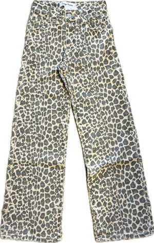 These vibrant leopard print denim pants for girls are a fun and stylish addition to any young fashionista's wardrobe, perfect for adding a wild touch to casual outfits.