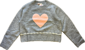 "Snuggle up in this adorable gray sweater featuring a sweet pink heart on the front, perfect for adding a touch of love to any little girl's outfit."